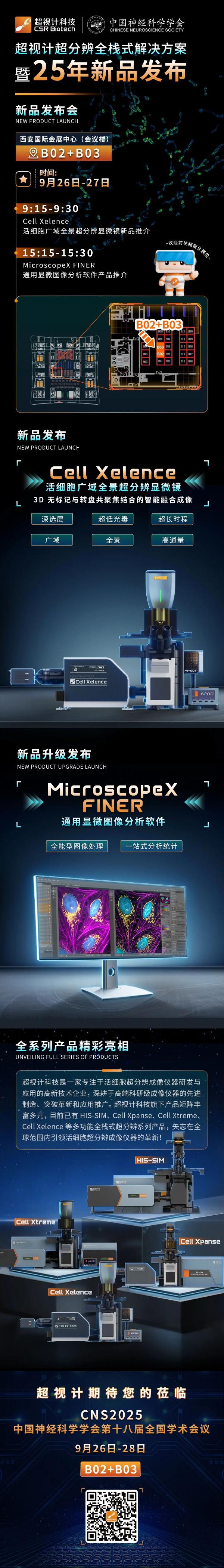 【邀请函】超视计诚邀您参加超分辨全栈式解决方案暨25年新品发布会,CNS展台亮点抢先看9月26日-27日,在中国神经科学学会第十八届全国学术会议(CNS 2025)召开期间,京津冀国家技术创新中心和粤港澳大湾区协同创新研究院共同培育的高科技企业广州超视计生物科技有限公司(简称“超视计科... -